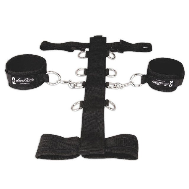 Light bondage from Lux Fetish designed for traditional dominance play. This versatile device restrains without fully incapacitating. Perfect for beginner's BDSM or couples just looking to try something new and naughty. Fully adjustable safe and comfortable. Use the cuffs separately or with the neck restraint. Cleans easily with mild soap and warm water.