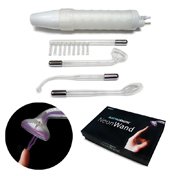 The level of sensation created by the wand can be controlled both by a multi-level intensity dial on the wand itself and also by which electrode you choose to use. The Neon Wand kit comes with 4 different glass attachments (Electrode Comb Mushroom Tube 90deg Probe Tongue Tube) that will be a thrill to experiment with. The kit color refers to the color of the light glowing in the glass electrodes.