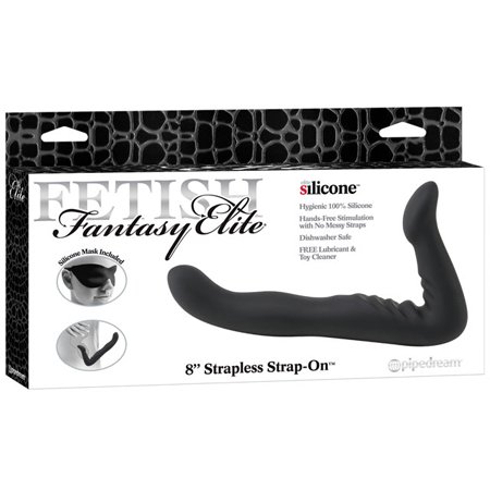 When your fetish-play demands the best materials possible only the Fetish Fantasy Elite line will do! Made from 100% medical-grade Elite Silicone™ this ultra-premium collection is body-safe hypo-allergenic and sculpted to excite. Elite Silicone quickly warms to body temperature and conforms to the body's contours giving users the most realistic stimulation ever imagined. It's phthalate-free latex-free nonporous and the safest sex toy material on the market today! Get hands-free stimulation and hot face to face sex with the Strapless Strap-on Dildo. Cleverly curved at just the right angle this strapless double dildo stays inside the wearer with each passionate thrust. The ergonomically designed dildo stays in place when the action heats up allowing you to enjoy hands-free penetration without a harness or strap. It's great to use on both sexes and can be used with either end in the vagina anus or hand. All Elite dildos are dishwasher safe and boilable allowing you to effectively sterilize them without any harsh chemicals or solvents. If you prefer to use a cleanser cleanup is a snap after the fun with Pipedream Toy Cleaner and warm water. Use plenty of Moist lube for an extra wet extra wild experience.