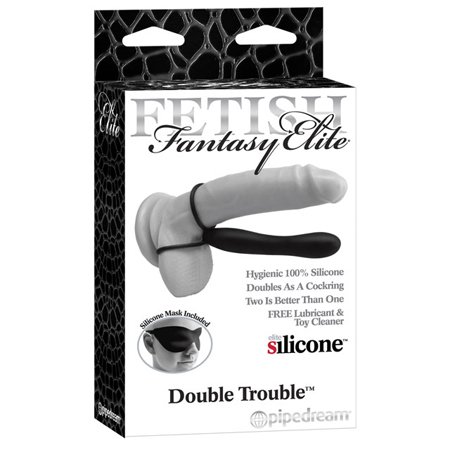 Double your pleasure and double the fun...with this strap-on dildo two's better than one! The silicone ring on the top of the shaft acts as a performance-enhancing cock ring while the larger bottom ring loops around his balls for a super-tight squeeze. You instantly become twice the man you were before thanks to a smooth silicone shaft underneath that's ready to double the trouble. The silicone shaft has a tapered tip for easy entry and is smooth and seamless all the way around. It's firm enough so that it won't bend during penetration. With this handy little sling strapped on you and your lover can experience the thrill of double penetration without having to involve another partner! Made from 100% medical-grade Elite Silicone this ultra-premium dildo is body-safe hypoallergenic and sculpted to excite. Elite Silicone is made to play hard and is extremely pliable ranging from firm to flexible and conforming to the body's contours. The supple material quickly warms to body temperature giving users the most realistic stimulation ever imagined. It's phthalate-free latex-free nonporous and the safest sex toy material on the market today! To clean the dildo can be placed in the dishwasher or boiled or cleaned with Toy Cleaner and warm water. Use plenty of Moist lube for an extra wet extra wild experience.
