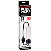 The Rookie of the Year Pump will give you the size and confidence you've always dreamt about without any harmful side effects. With each squeeze of the medical-style pump ball your pleasure rod will grow bigger thicker and swell with power. Once you penetrate the smooth flexible PVC opening you'll quickly discover throbbing rock-hard erections that feel great and last and last—with no midway performance letdowns! The clear vacuum tube allows you to watch your cock grow and you can instantly relieve pressure by uncovering the air release valve on the pump cylinder. To prolong ejaculation slide the included enhancement ring over your shaft until it's nice and snug. The tight squeeze will prolong cumming help maintain your erection and extend the fun. When you're done simply detach the cylinder from the vacuum hose and restore it to like-new quality with Pump Worx Toy Cleaner and warm water.