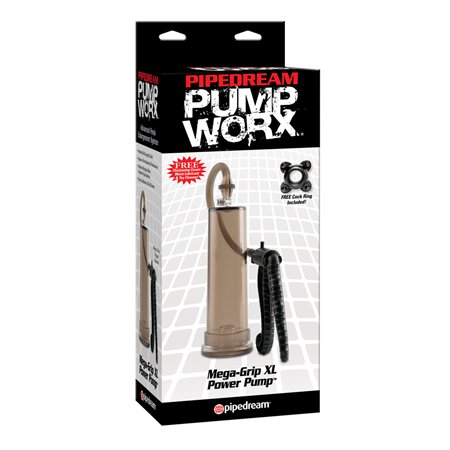 Discover thick throbbing erections that last and last with this professional-grade Mega-Grip XL Power Pump. Developed as a safe affordable non-surgical alternative to expensive medical procedures and pills this handheld penis pump is the easy way to instantly enlarge your penis without any negative side effects. Simply insert your penis into the vacuum cylinder tube squeeze the pistol-grip handle and watch your pleasure rod get bigger and thicker than ever before! The soft PVC sleeve forms a perfectly tight seal against the skin and creates a powerful vacuum inside the chamber forcing your erection to quickly expand and swell with power. The smokey vacuum cylinder allows you to see your cock get bigger and fatter with each squeeze of the lever. The tube is made from thick heavy grade acrylic while the trigger-style handle is contoured to fit perfectly in your hand. When you've reached your desired size simply push the quick-release valve near the neck of the pump to instantly relieve the pressure and you're ready to play! Use the included enhancement ring to help maintain your erection and prolong ejaculation. When you're done simply detach the cylinder from the hose and cleanup is a snap with Pipedream Toy Cleaner and warm water.