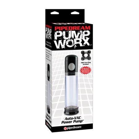 Discover thick throbbing erections that last and last with this professional-grade Auto-VAC Power Pump. Developed as a safe affordable non-surgical alternative to expensive medical procedures and pills this hands-free auto-powered penis pump is the easy way to instantly enlarge your penis without any negative side-effects. Just sit back relax and let the battery-powered pump do all the work for you! With the push of a button the powerful motor creates a super-strong vacuum inside the chamber forcing your erection to quickly expand its length and girth. Simply insert your penis into the tube press the power button and watch your pleasure rod swell with power! The soft TPR sleeve forms an air-tight seal against the skin creating incredible suction and amazing results. The clear vacuum cylinder allows you to see your cock get bigger and fatter by the second! The tube is made from thick heavy grade acrylic and marked with metric graduations to measure your growth. When you've reached your desired size simply push the quick-release button under the power button to instantly relieve the pressure. To prolong ejaculation slide the included enhancement ring over your shaft until it's nice and snug. The tight squeeze will prolong ejaculation help maintain your erection and extend the fun. When you're done unscrew the pump cylinder from the pump motor then clean the tube with Pipedream Toy Cleaner and warm water to restore it to like-new quality.