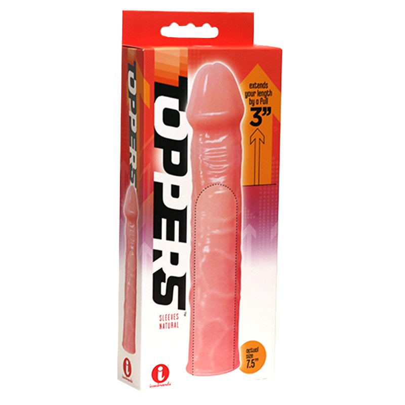 Add a full 3 inches to the length of your penis by sliding into Toppers new from Icon. A stretchy body safe TPR sleeve fits snugly around your shaft and at the end is a solid ultra-real extension firm squeezable just like the real thing. Penetrate your lover with its realistic head shaft--much better then a dildo--you can control the action! For a custom fit the bottom can be trimmed. Add a full 3 inches to the length of your penis by sliding into Toppers new from Icon. A stretchy body safe TPR sleeve fits snugly around your shaft and at the end is a solid ultra-real extension firm squeezable just like the real thing. Penetrate your lover with its realistic head shaft--much better then a dildo--you can control the action! For a custom fit the bottom can be trimmed.