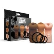 3 strokers in one box that have a realistic feel and are reusable. A 4.5” sleeve with a tight textured tunnel that is super-stretchy to fit any man. Easy to use and easy to clean. 100% silicone C-ring set includes 3 standard ring sizes of 1.8” 2.2” and 2.4”. Body safe and phthalate free. The 3 styles include pussy ass and mouth.