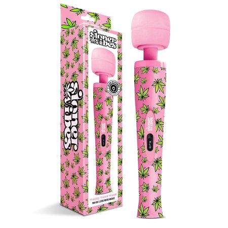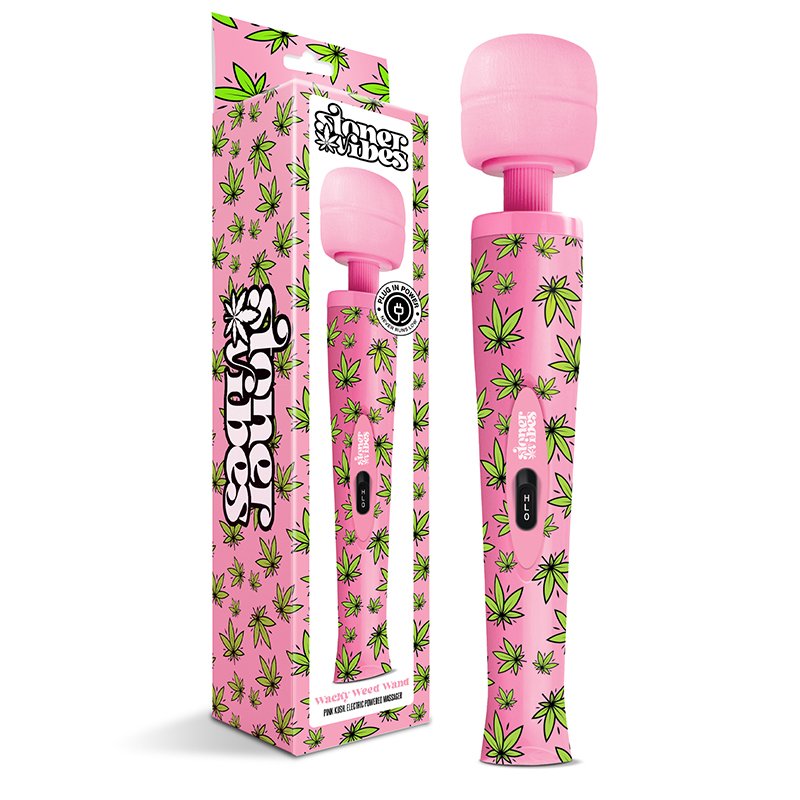 The classic wand massager just got lit! Deep satisfying external vibrations at both low and high speeds for a truly mind-blowing trip! Wacky Weed's vibrant and fun weed design plugs into a wall outlet so you never go dankrupt. Flexible ball spring head ensures that the right amount of pressure is applied for ultimate satisfaction. Easy-to-hold long handle allows you to reach further and angle the 2.5" ball head for an array of sensations. Plug-in power never runs low on A/C 110 volt power. Deep satisfying vibrations unmatched by ordinary battery powered vibrations. Powerful dual-speed vibrations. Rocker switch lets you easily toggle between the powerful low and high settings. Unbeatable rumbling vibration and power at both speeds. Body safe and phthalate free. Wand is 13.5 inches in length and 3 inches in width. Power cord is 5 feet in length. Sleep smoke vibe repeat!