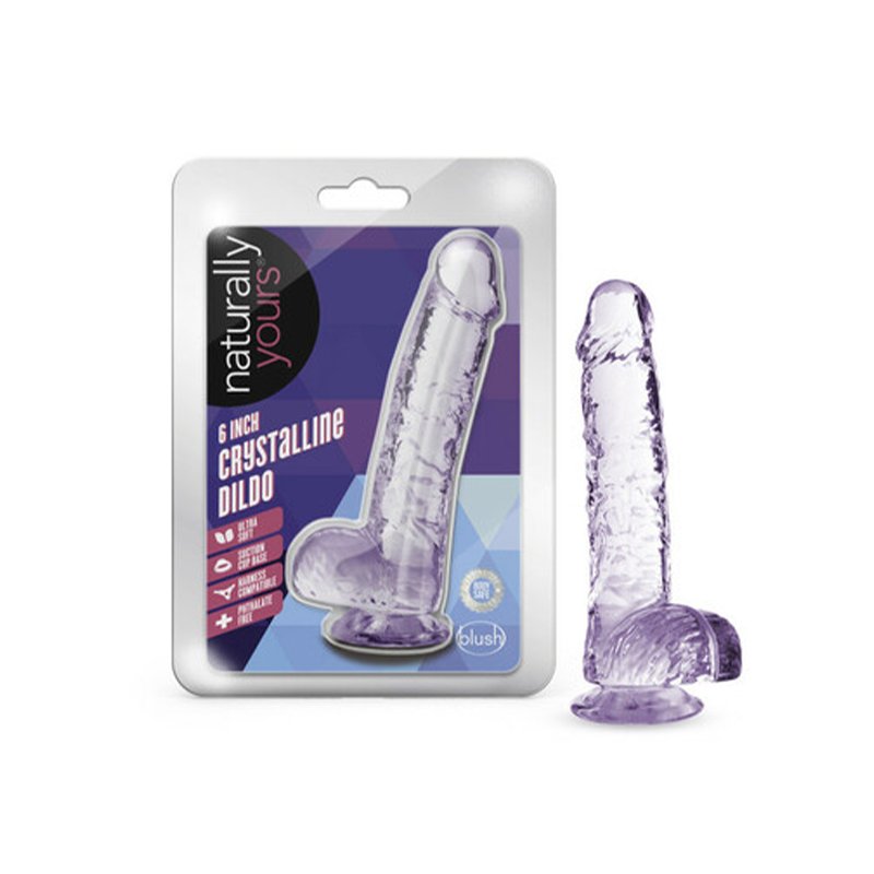 For a real feel the Naturally Yours 6" Crystalline Dildo aims to please. It's hand sculpted for lifelike effect with just the right amount of firmness and flexibility. The suction cup base will stick to almost any smooth flat surface and is harness compatible. The Naturally Yours 6" Crystalline Dildo is great for solo play or partner play. Made from TPE it contains no fragrances phthalates paraffins or latex. As with all products and/or materials at Blush it has been 3rd party lab tested to meet or exceed REACH and Prop65 safety compliance directives. It's your body. Be mindful of what you put in it.