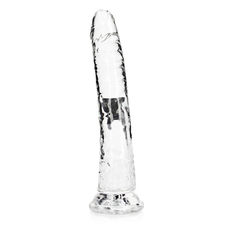 Ready for a CRYSTAL CLEAR orgasm? Reach your finest climax in style with these beautifully shaped clear dildos. This dildo can see right through you and will know exactly how you like it. This dildo is suitable for anal and vaginal use! Finger-like precision stimulation great for yummy anal stimulation and definitely a clitoris friend? You'll find all that and more in this dildo! The base functions as a suction cup for hands-free use but also gives it the ability to be used in a harness. All REALROCK CRYSTAL CLEAR dildos are phthalate-free latex-free body-safe and non-porous which makes them easy-to-clean and gives them a longer lasting durability.