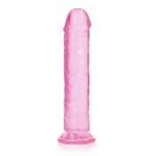 Ready for a CRYSTAL CLEAR orgasm? Reach your finest climax in style with these beautifully shaped clear dildos. This dildo can see right through you and will know exactly how you like it. This dildo is suitable for anal and vaginal use! Finger-like precision stimulation great for yummy anal stimulation and definitely a clitoris friend? You'll find all that and more in this dildo! The base functions as a suction cup for hands-free use but also gives it the ability to be used in a harness. All REALROCK CRYSTAL CLEAR dildos are phthalate-free latex-free body-safe and non-porous which makes them easy-to-clean and gives them a longer lasting durability.