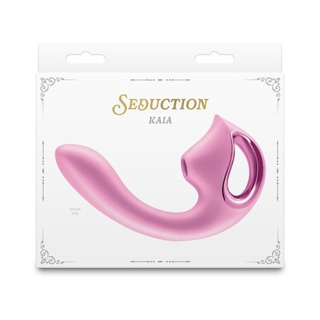 Kaia by Seduction – A posable and insertable vibrator that delivers fluttering air pulse stimulation to the clitoris and rumbling G-Spot sensations for a breathtaking experience. Kaia is made from premium body-safe silicone and is accented with a lustrous metallic handle. Silicone has a beautiful metallic sheen. Rechargeable. Water Resistant. Suitable with all lubricants including silicone. 3 speeds / 12 functions.