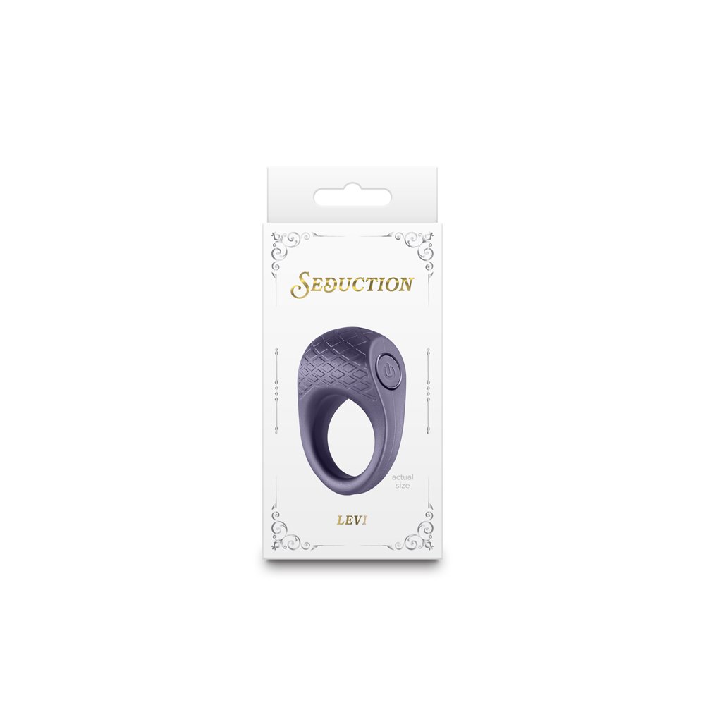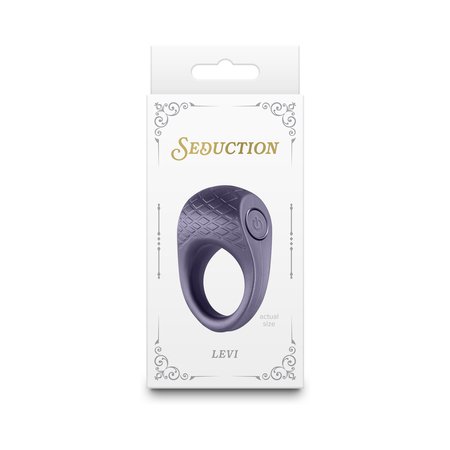 Perpetuate pleasure and boost performance with Levi by Seduction. A sleek vibrating cock ring that fits snugly and provides intense vibrations. Levi is made of stretchy body-safe silicone and is textured for added sensations. Silicone has a beautiful metallic sheen. Rechargeable. Water Resistant. Suitable with all lubricants including silicone. 3 speeds / 7 functions.